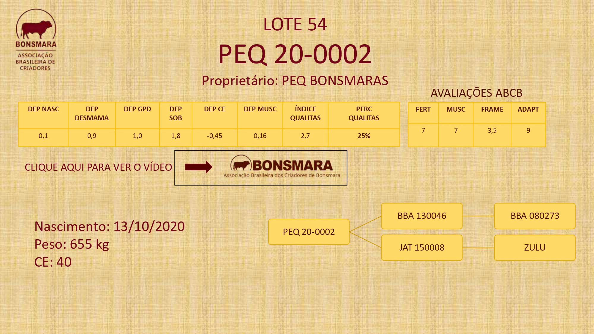LOTE 54 – PEQ 0002 – LEILÃO BONSMARA BRASIL 2023 – DIA 25/10 AS 20 H